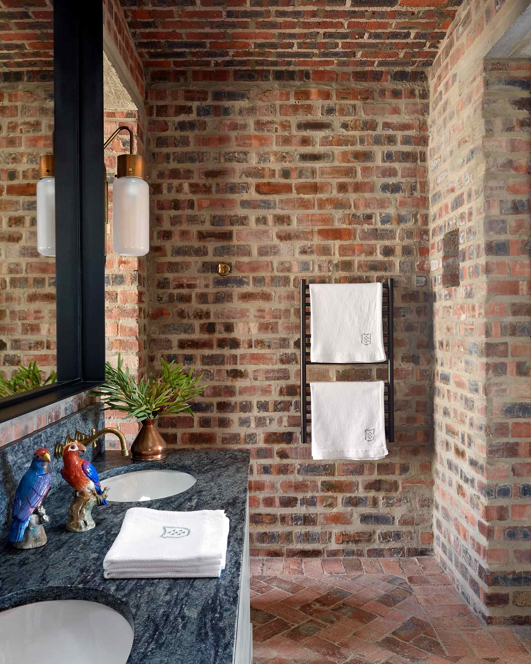 It’s immediately apparent that a lot of work has gone into renovating the farm, which was previously called Koppies (meaning ‘hills’) and was in its new B&B configuration christened 7 Koppies in a nod to Rome, where both Marc and James spent parts of their childhood. Across its six rooms and suites and the separate Rockwood Cottage (which comes with a private five-metre pool, outdoor dining areas, an open-air bathtub and a South African braai barbecue), guests will find an inspired array of artworks, collectibles and natural touches that create a haptically impactful space I just want to wrap myself up in. Everything here stimulates the senses: textured carpets, rattan ceilings, sand dollars and mushroom shells, floor-to-ceiling linen curtains, shiny brace fittings against rustic bricks, crackling fireplaces in the chilly night.