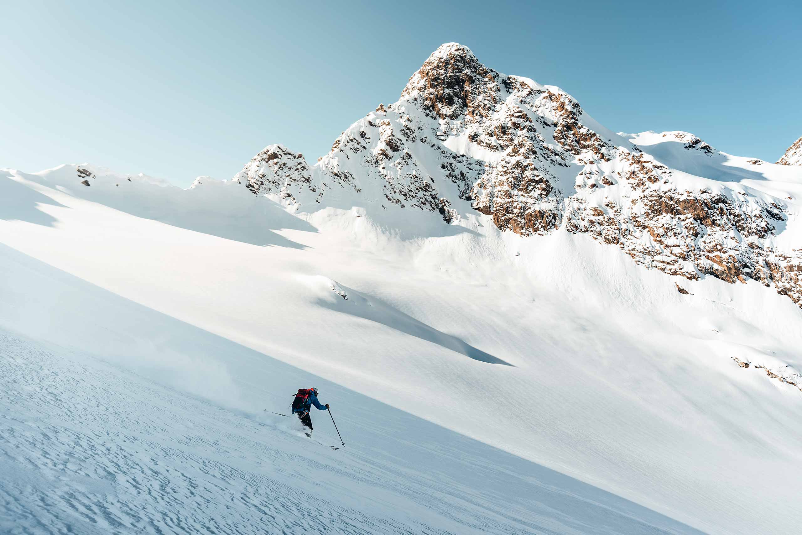 We were lucky that our party included professional ski photographer Jeff Cricco and his friend, pro skier Bryan Fino – together, Cricco and Fino for short. The pair both live in Summit County, Colorado, and have skied all over the world, including regular trips to Japan. Neither, however, had spent much time in the Alps. Despite their familiarity with all things heli-skiing, they were genuinely awestruck by the terrain. “Dude, these mountains are steeper than anything we have in Colorado,” Fino said, “and they just go on and on and on…”