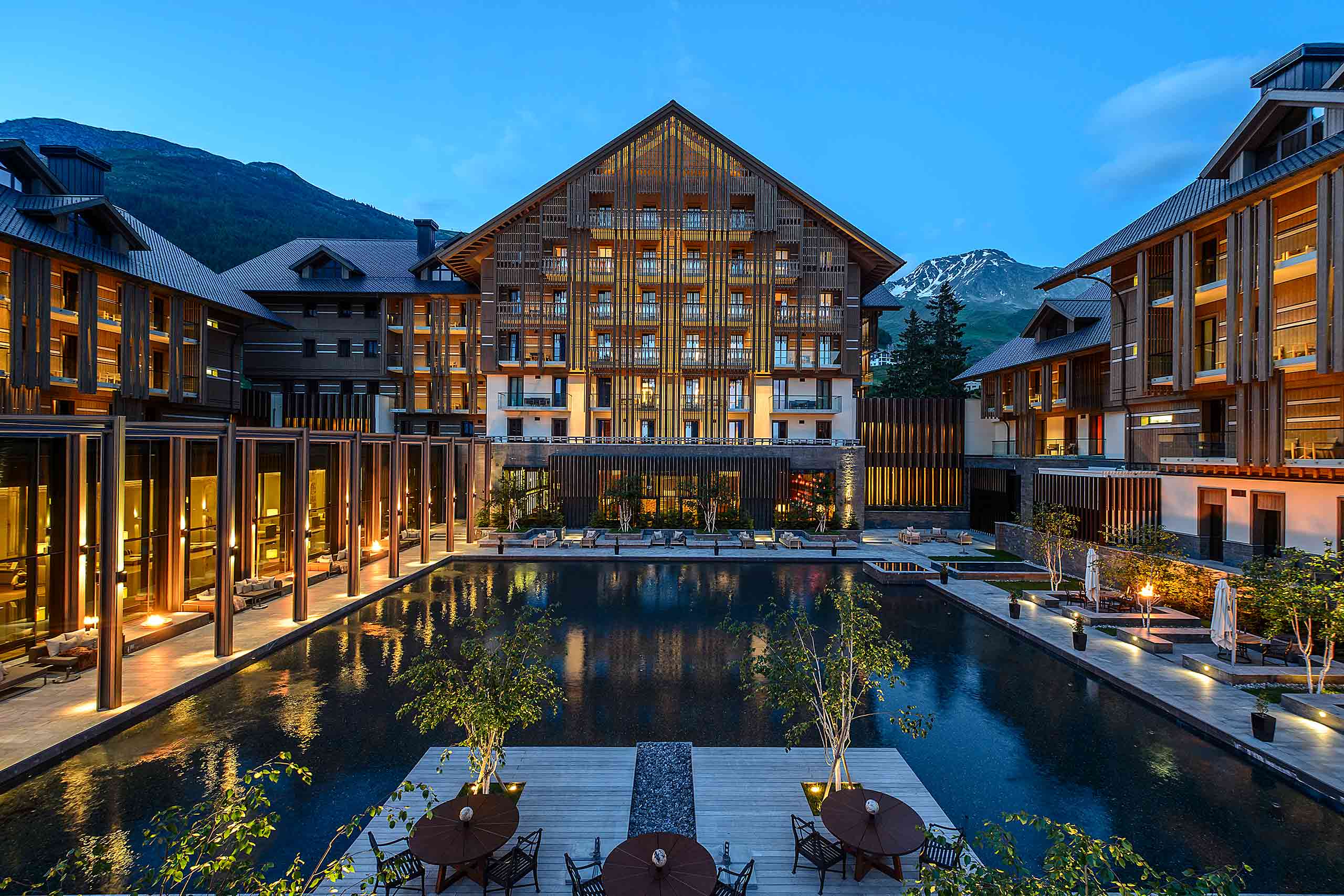 As the first, critical piece in Sawiris’s audacious Andermatt masterplan, The Chedi was instrumental in setting the tone for the town’s future, both economically and aesthetically, its supersized Swiss-chalet silhouette also incorporating a sleek modern elegance that evokes the brand’s Asian luxury origins. It’s a quietly bold fusion that is carried through every detail of its low-lit interiors, which fuse lavishly Swiss use of natural Alpine materials and more fires than bedrooms (206 versus 118) with delicate latticed lamps and screens, floor cushions clustered around low tables and a spectacular Asian-inspired spa and vast indoor-outdoor pool.
