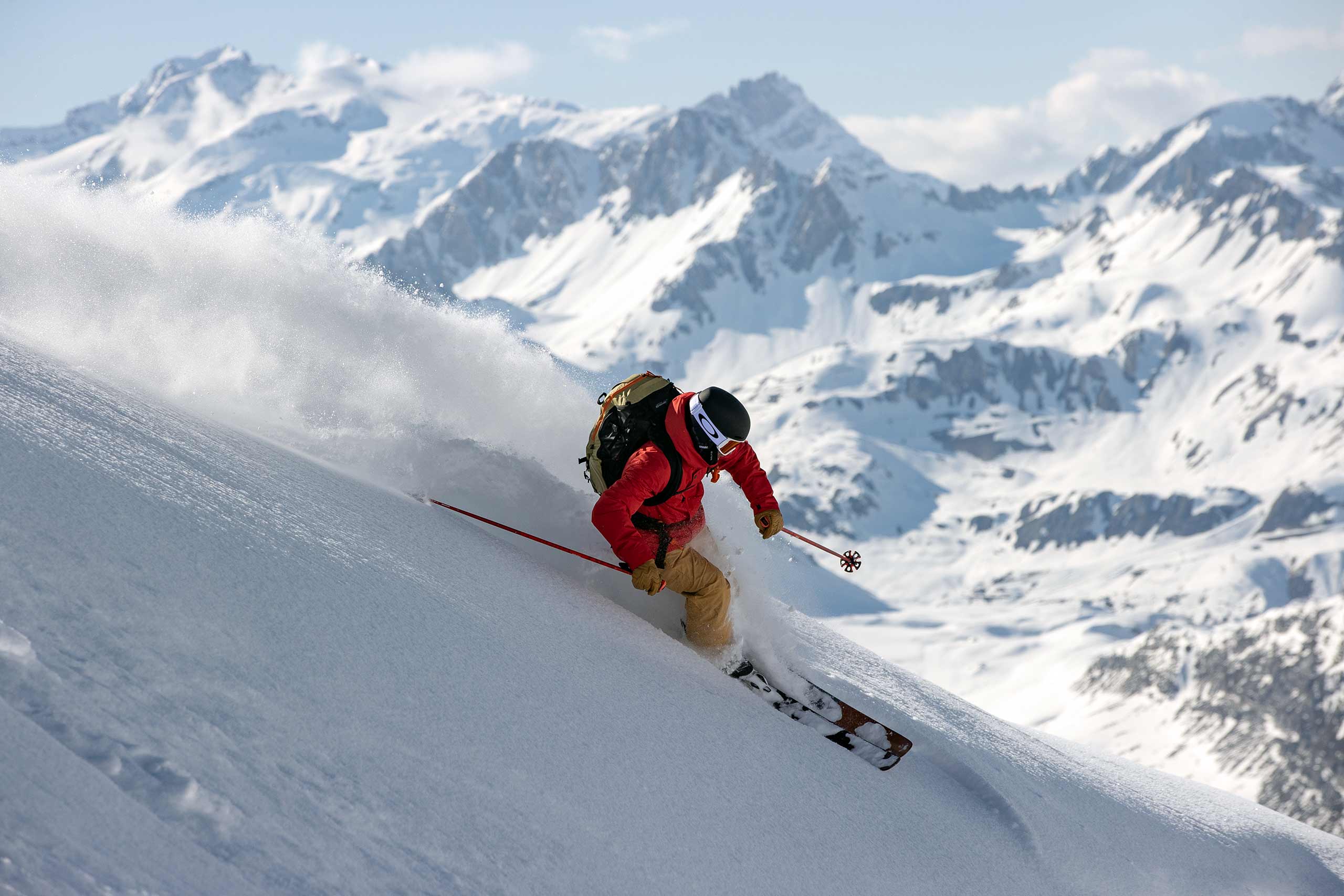 Heli-skiing – that is, using a helicopter instead of lifts to ferry you to the top of a mountain – originated in North America as a way of allowing adventurous skiers and snowboarders access to untouched powder on every single run. The remote areas of the Rockies are large enough to accommodate any number of US and Canadian operations, but heli-skiing is banned in France, where ski resorts and alpine villages are more tightly packed together. This is where the genius of Chalet Hibou’s location comes in. A short shuttle ride dropped us at the bottom of La Rosière, from where we caught a sequence of ski lifts over the border into Italy. Here, it was perfectly legal for a pilot to pick us up, and the bowl of previously distant peaks surrounding us suddenly became our oyster.