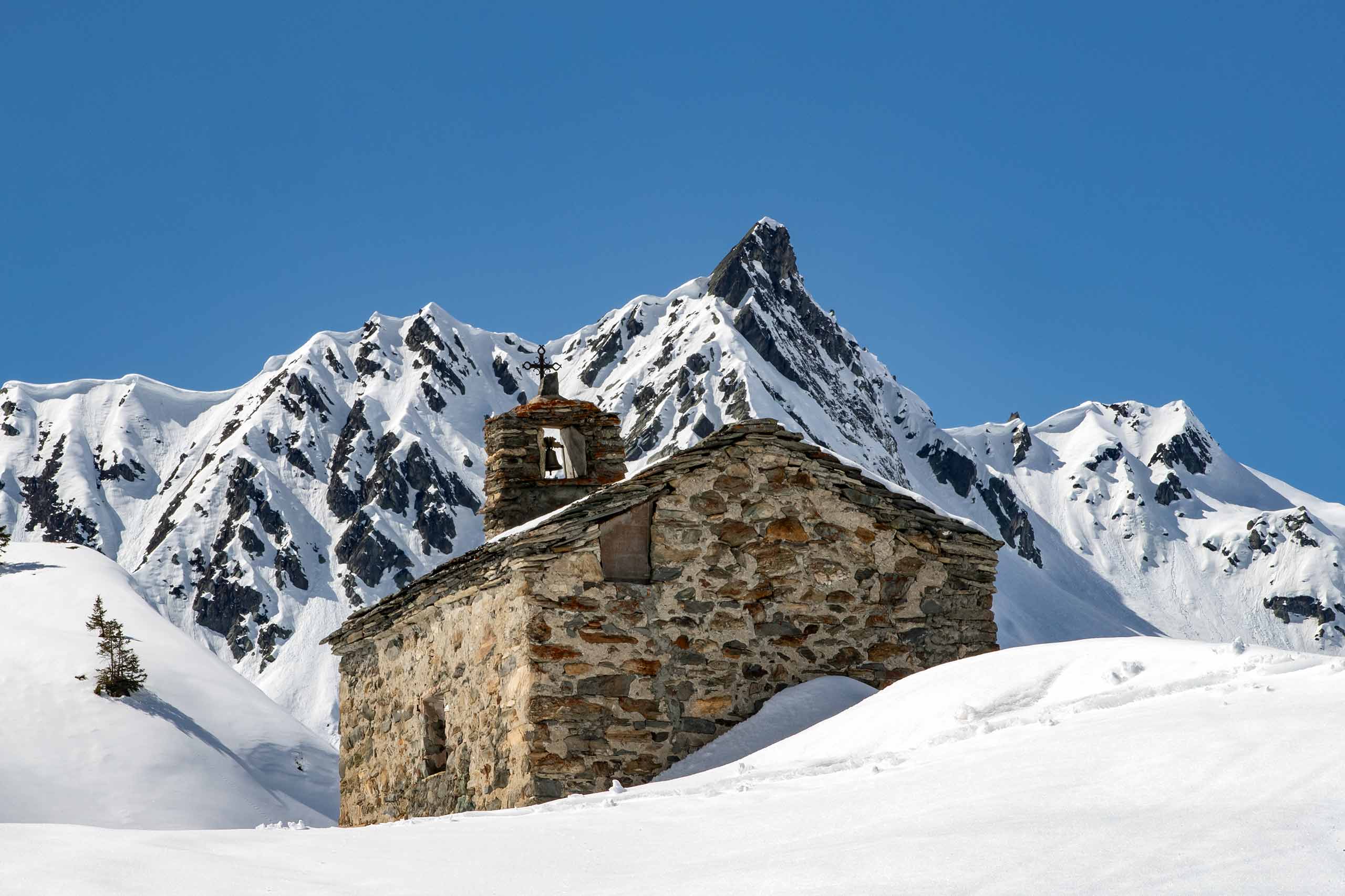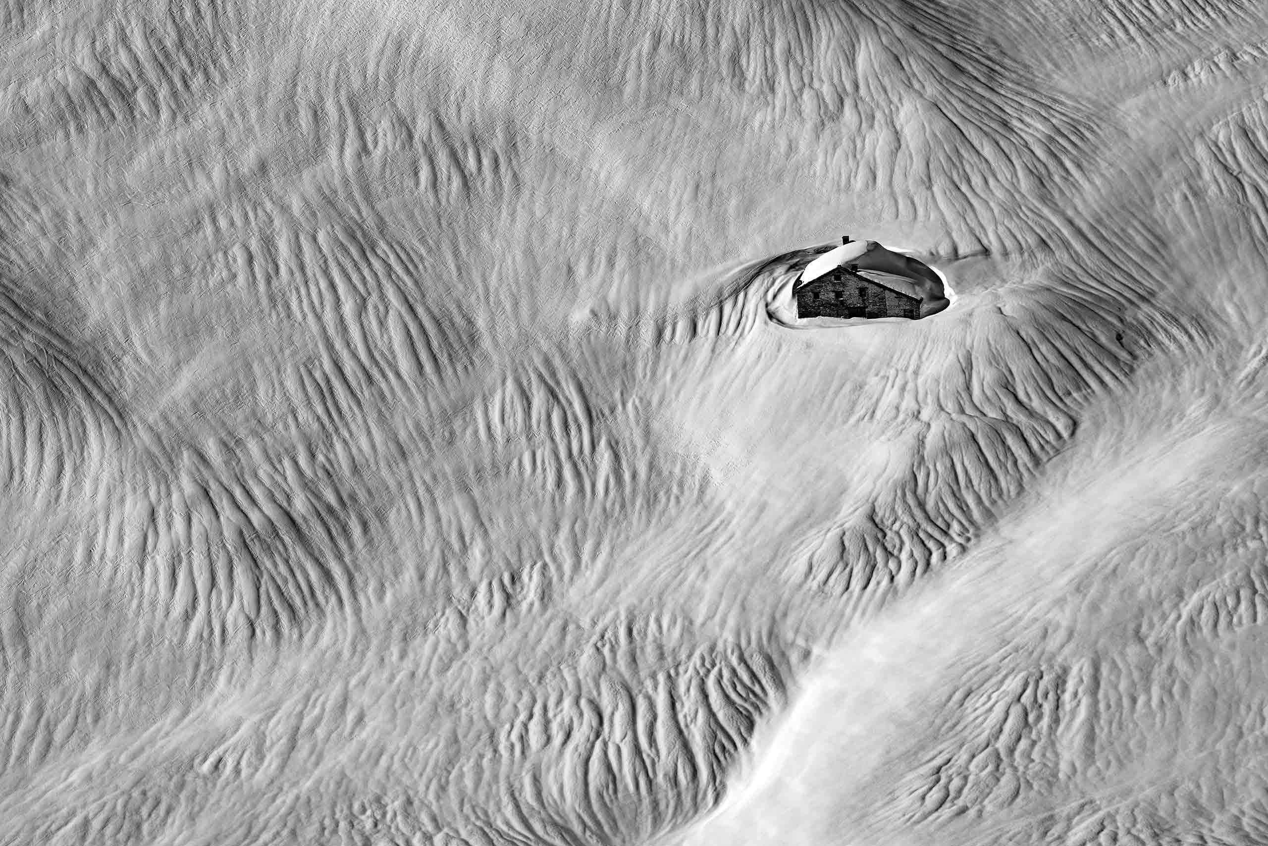 For our final flight of the morning, the pilot skimmed low along the top of a ridge before dropping us off on a large, gently sloping dome. Benjamin turned to the group. “Now, we go heli-skiing in France,” he said, a wicked twinkle in his eye. “But, you see, we have landed on the border, we are not breaking the rules.” With nearly 2,000m (6,500ft) of vertical descent, this run would basically lead us all the way back to Le Miroir, he told us. But halfway down, on the edge of a frozen, snow-covered lake, the Eleven Chalet Hibou crew had prepared another surprise for us. We stopped among a small cluster of shepherds’ huts – some little more than roofless stacks of stones – and Benjamin started digging the snow out from one of the doors. “Voilà,” he said, when he and Renaud had prised it open. “Je vous présente le Refuge du Ruitor.”