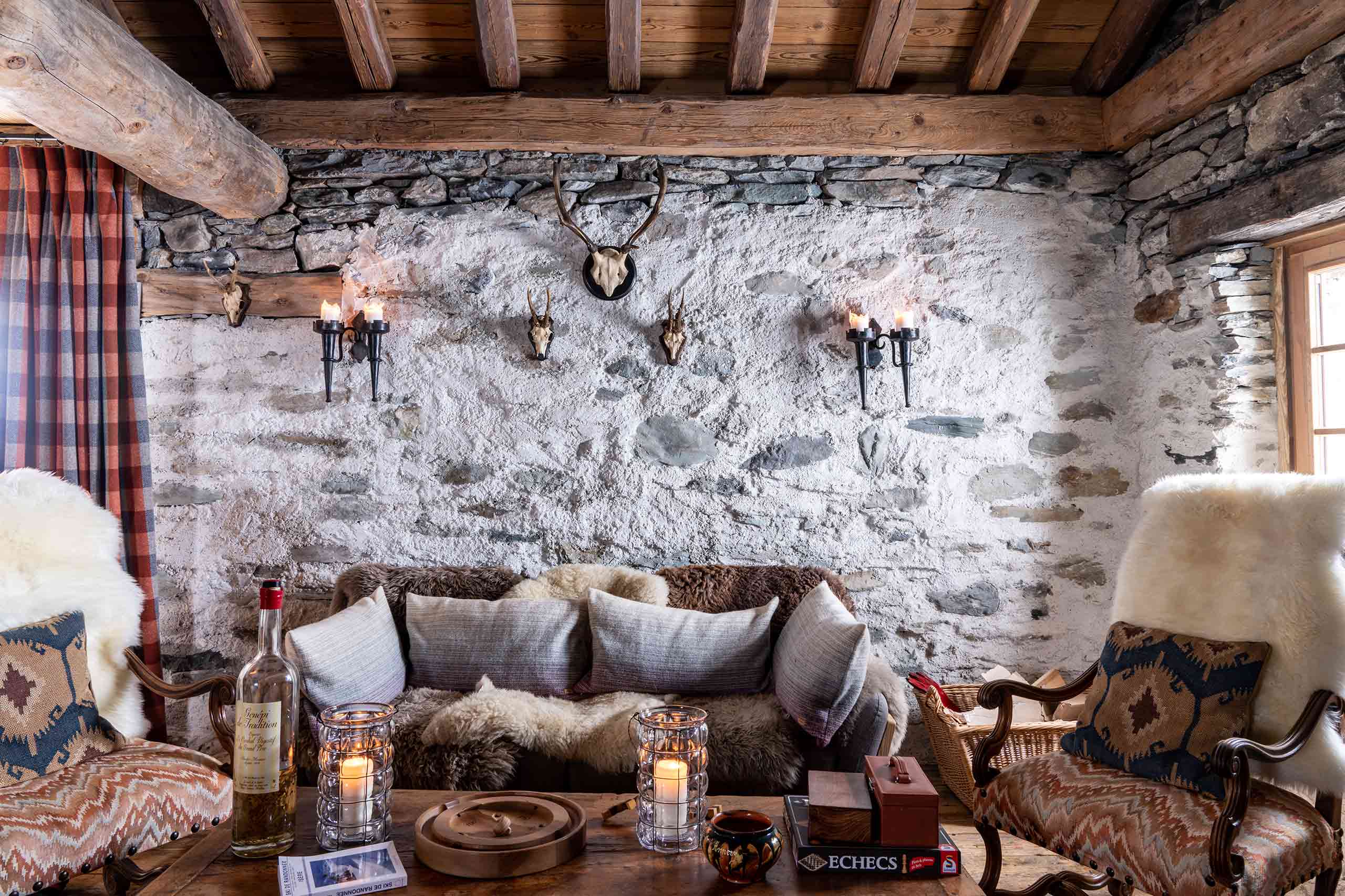 Her touch is visible in Chalet Hibou too, which is decked out in a style that is utterly in keeping with its French Alpine aesthetic, while at the same time carefully incorporating all the comforts a seasoned American luxury traveller might expect in their high-end Aspen condo. Pen portraits of Napoleon’s generals adorn the walls, old maps figure prominently, while stags’ heads and stuffed birds add a hunting-lodge vibe. It is the kind of place you could imagine Henri IV himself coming pour la chasse – if he’d lived in the 21st century, washed his hands with Aesop soaps and been partial to a detoxifying ginger shot for breakfast each morning.