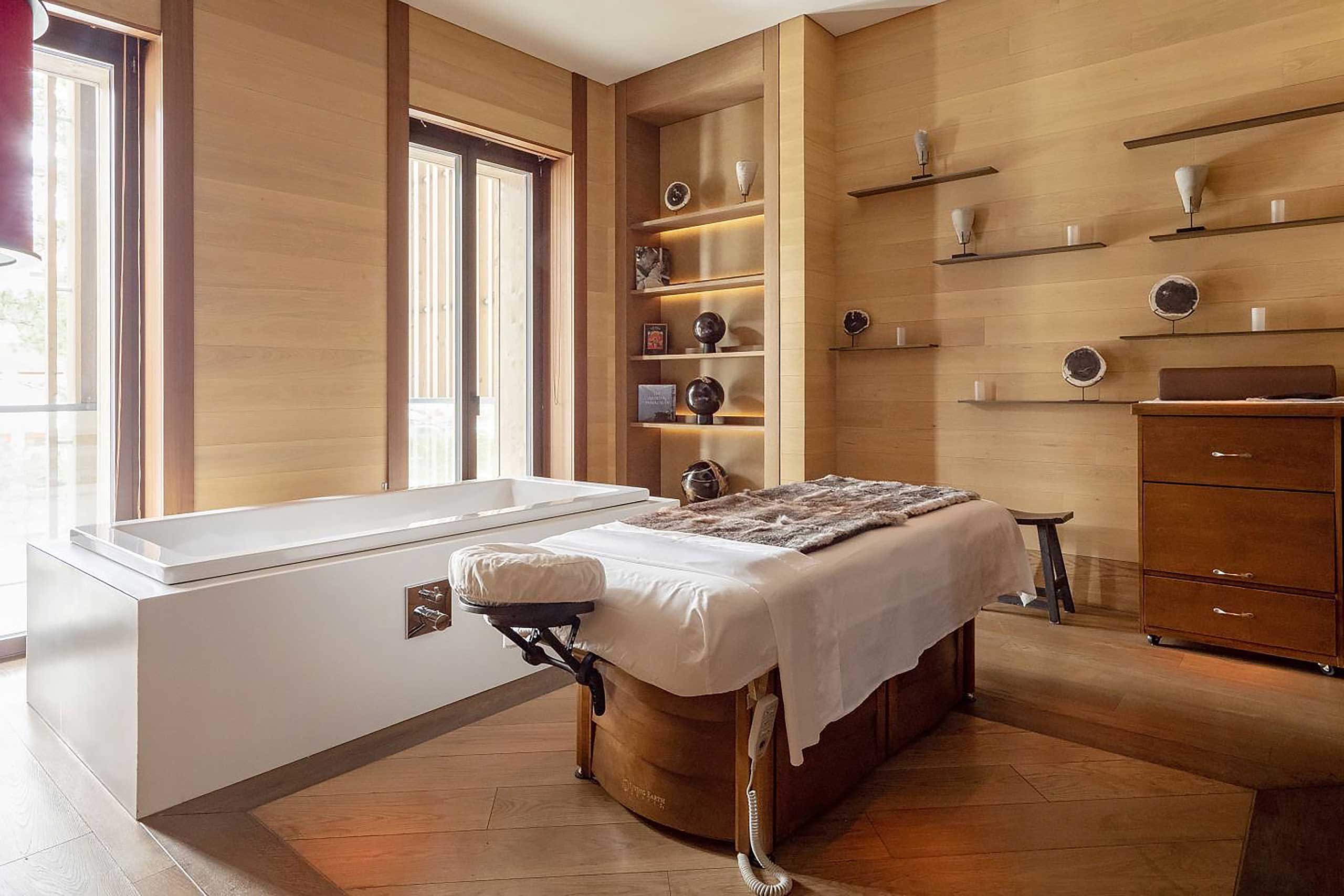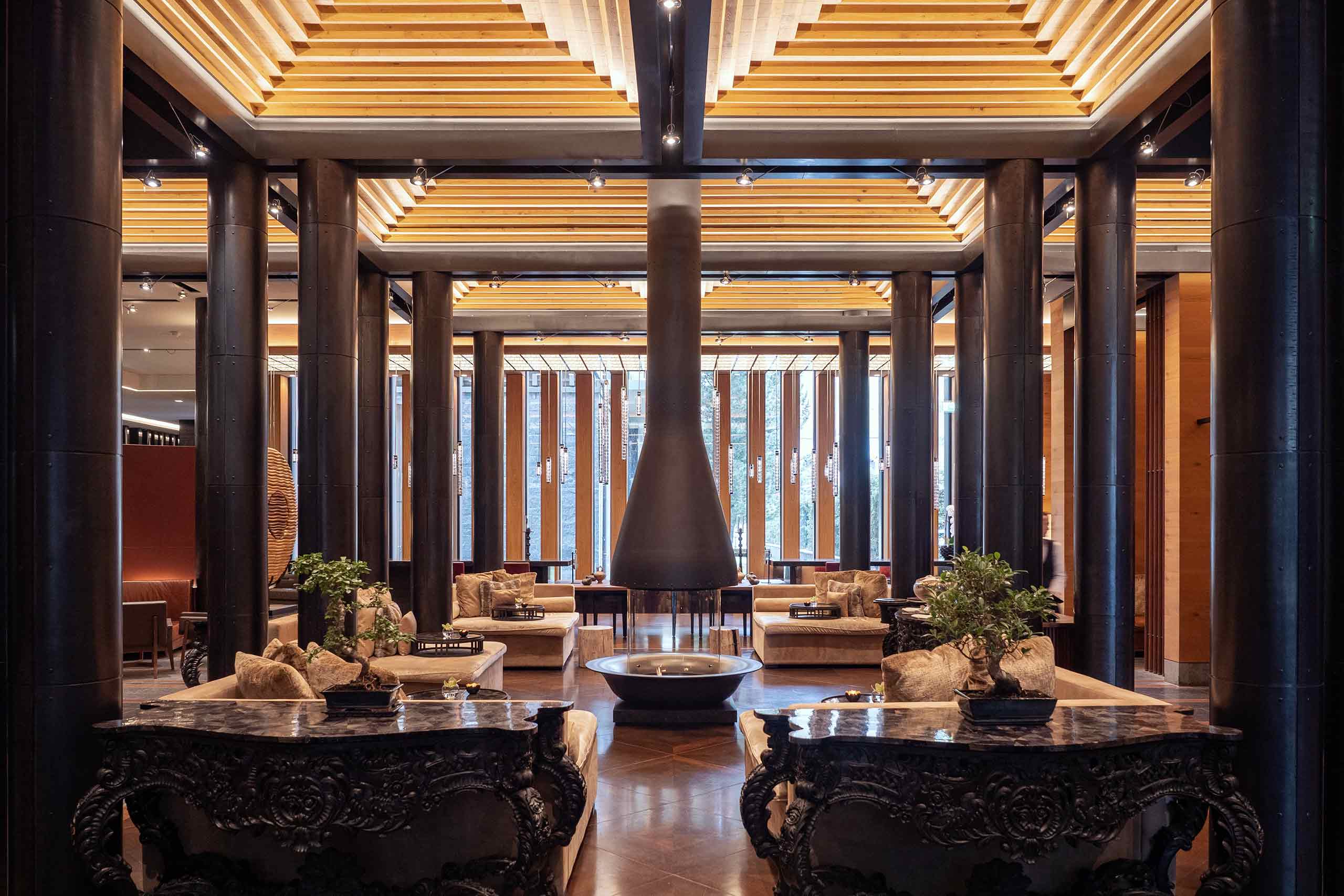 As the first, critical piece in Sawiris’s audacious Andermatt masterplan, The Chedi was instrumental in setting the tone for the town’s future, both economically and aesthetically, its supersized Swiss-chalet silhouette also incorporating a sleek modern elegance that evokes the brand’s Asian luxury origins. It’s a quietly bold fusion that is carried through every detail of its low-lit interiors, which fuse lavishly Swiss use of natural Alpine materials and more fires than bedrooms (206 versus 118) with delicate latticed lamps and screens, floor cushions clustered around low tables and a spectacular Asian-inspired spa and vast indoor-outdoor pool.