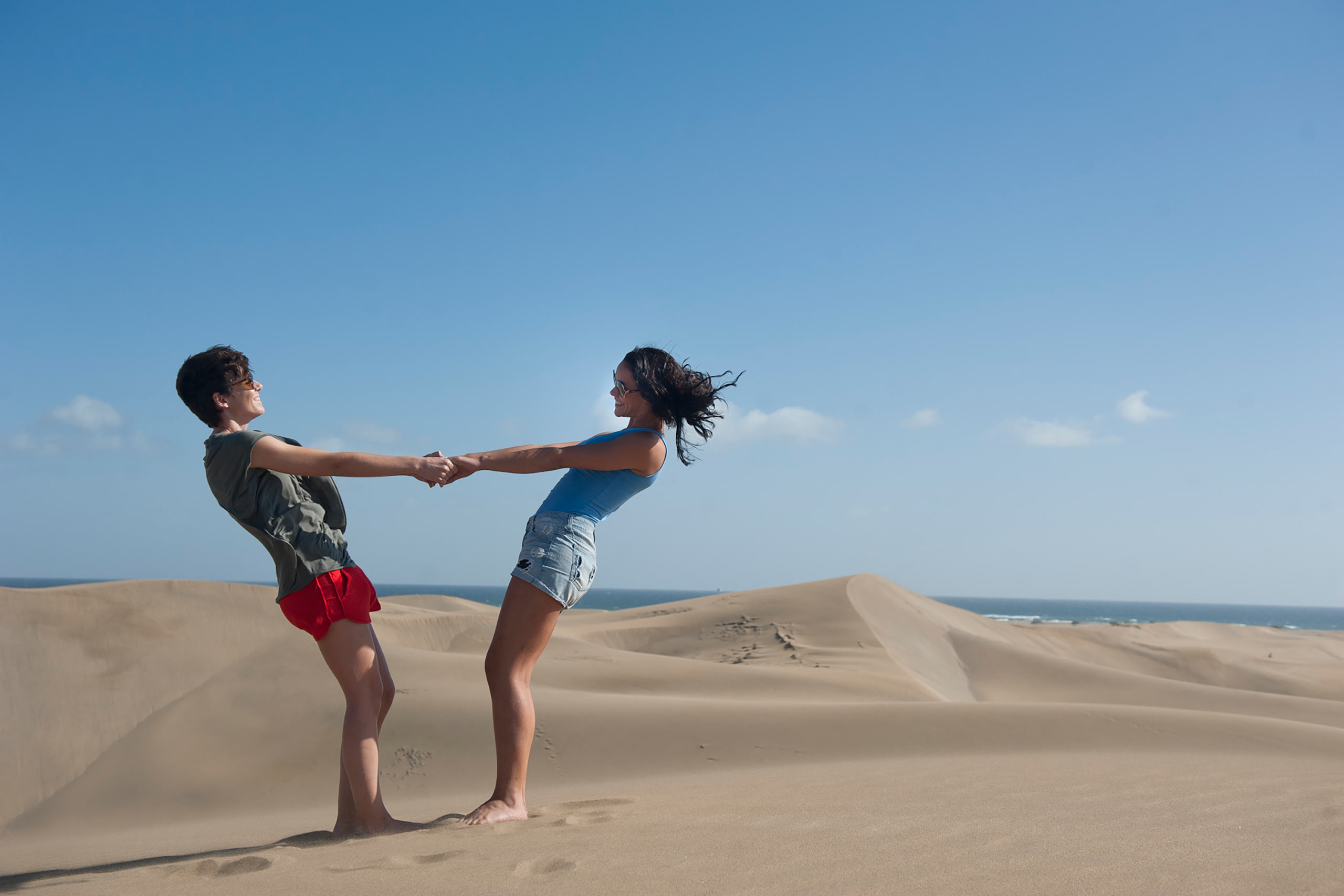 It’s impossible to talk about Gran Canaria without at least one ode to its most iconic sight: the Maspalomas Dunes. Stretching between the desert and the sea, these golden waves of sand have been the backdrop to more selfies than one dares imagine. Walk them at dawn, when the light turns everything the colour of honey, or at dusk, when the wind cools and the ocean hums below. It’s romantic, cinematic, and – should you wander far enough – delightfully risqué.