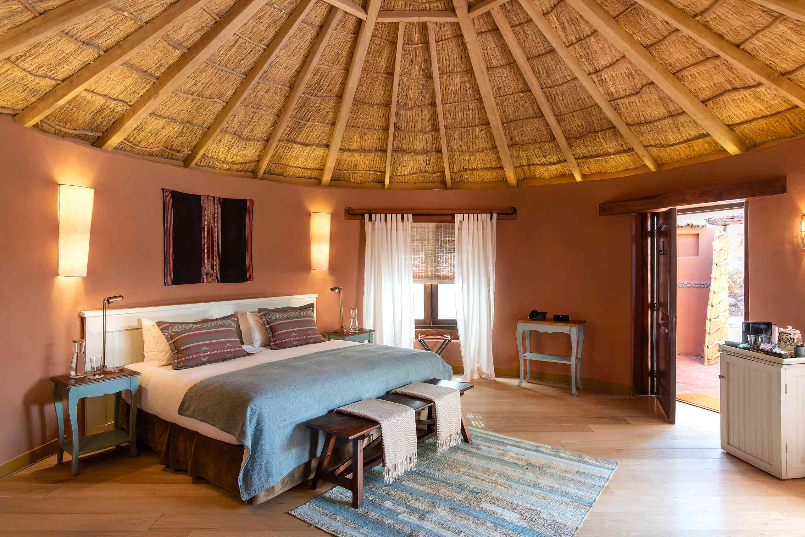 It’s part of the reason why Awasi Atacama is a comparatively small operation, with just a dozen circular accommodations, each with a small, private vestibule, strung along a path towards the back of the property. But the ground plan isn’t the only thing that might remind you of a safari camp – so, too, will the intimate, compound-like feel, the planning area where guides unlock the wonders of the desert when discussing excursions with guests, and the lanterns whose warm light flickers in the grounds’ every corner at night.