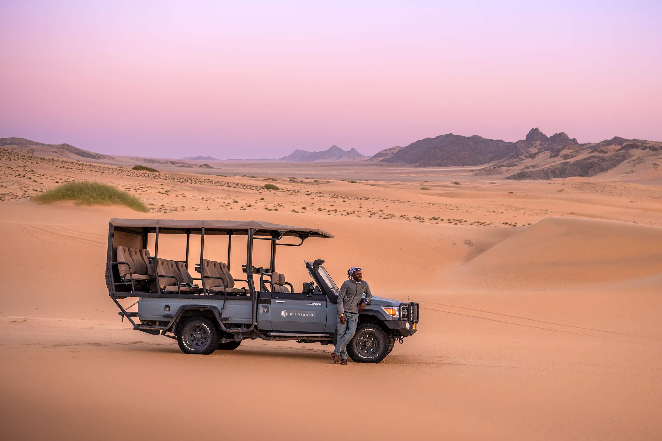 Hours before, we had landed on a tiny airstrip, then climbed aboard a four-by-four for a 90-minute journey to the camp through a desert flanked by mountains, over cracked earth studded with parched shrubs, and otherwise past zero signs of life. Its mesmerising nothingness made this the most extraordinary environment we have ever seen. “We might see baboons”, said our guide, Michael. We didn’t. “And oryx”. We saw oryx tracks and, a while later, a dot in the far distance Michael assured us was a male of the genus.